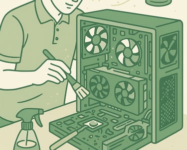 Je vous propose un service complet de révision et nettoyage : un contrôle général de votre équipement, dépoussiérage minutieux et remplacement de la pâte thermique pour un refroidissement optimal.
